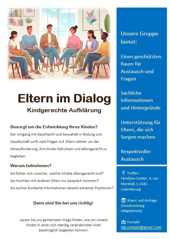 Neue Gruppe: Eltern im Dialog, Termine zu erfragen bei: itgl.contact@gmail.com.